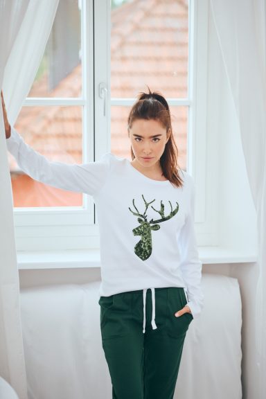 Das Sortiment umfasst eine Vielzahl von Pyjamas, Nachthemden, Short- und Long-Set-Kombinationen sowie Capri-Pyjamas. Typische Merkmale sind niedliche Prints, wie Herzchen, Tiere oder florale Muster, sowie verspielte Details wie Schleifchen oder Stickereien. Die Designs sind oft in sanften Farben gehalten, die eine gemütliche Atmosphäre vermitteln.
